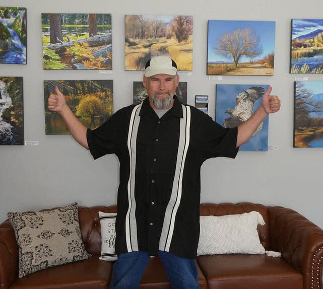The outdoor photographic aspect of my work gets me out into the natural world. Being there refreshes me and causes gratefulness to God. Hiking through beautiful landscapes gathering photos, ideas and inspiration are the stuff dreams and my art is made of. When the weather is bad, I have a nice home office/art studio to process landscape photos or create art in. I love working from my home.