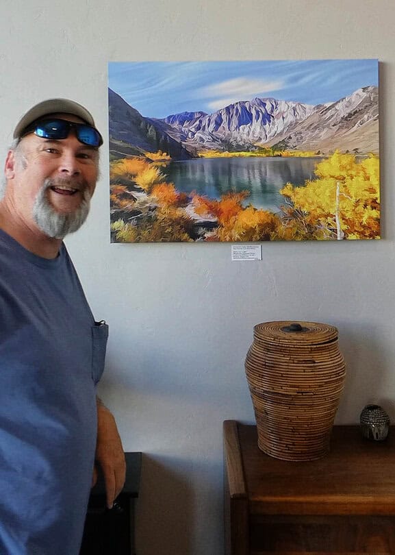Seeing the great landscapes of the Californian mountains, deserts, and coasts fuels my art. Another art fuel comes from an experience with God, that occurred when I accepted Jesus as my Lord and Savior. That experience involved a type of warm flow and undulation. I can’t adequately explain it. But I’ll try because it’s a significant part of the art I do. For a moment it seemed as though I were in heaven, secure, warm and joyful. There was this sensation or knowing that everything I was experiencing was flowing from God, that all was well and knowing that place, wrapped in pure joy, will be my eventual destination. When I die that’s where I’ll pick up at.
