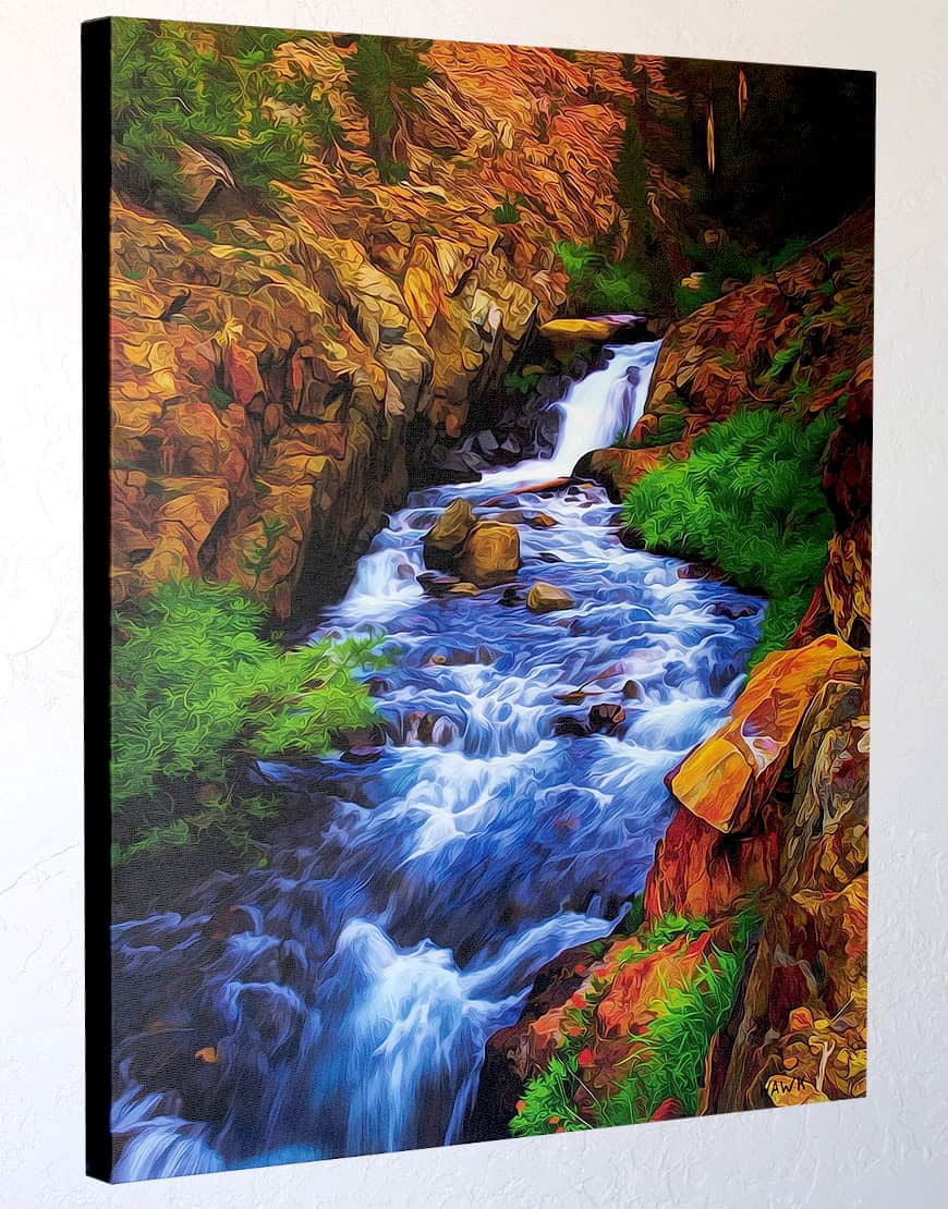 The feeling of flow has been concentrated into the water where it belongs. I’m attempting to make the rocks rockier, the creek flowier and plants stand out a bit more.